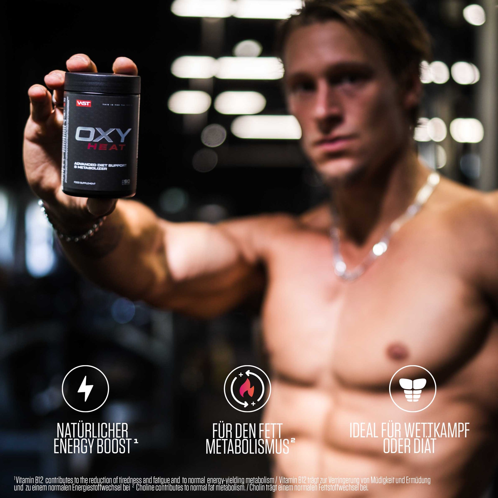 OXY HEAT sets a new standard for diet supplements, specially developed for athletes in competition phases. It delivers a clean composition of known and patented ingredients that have been proven to naturally support the body's fat metabolism and endurance ¹ ². OXY HEAT is the ideal supplement for your diet to help you achieve your goals. Ideal for a push before your cardio or endurance workout to help you work up a sweat and burn calories.