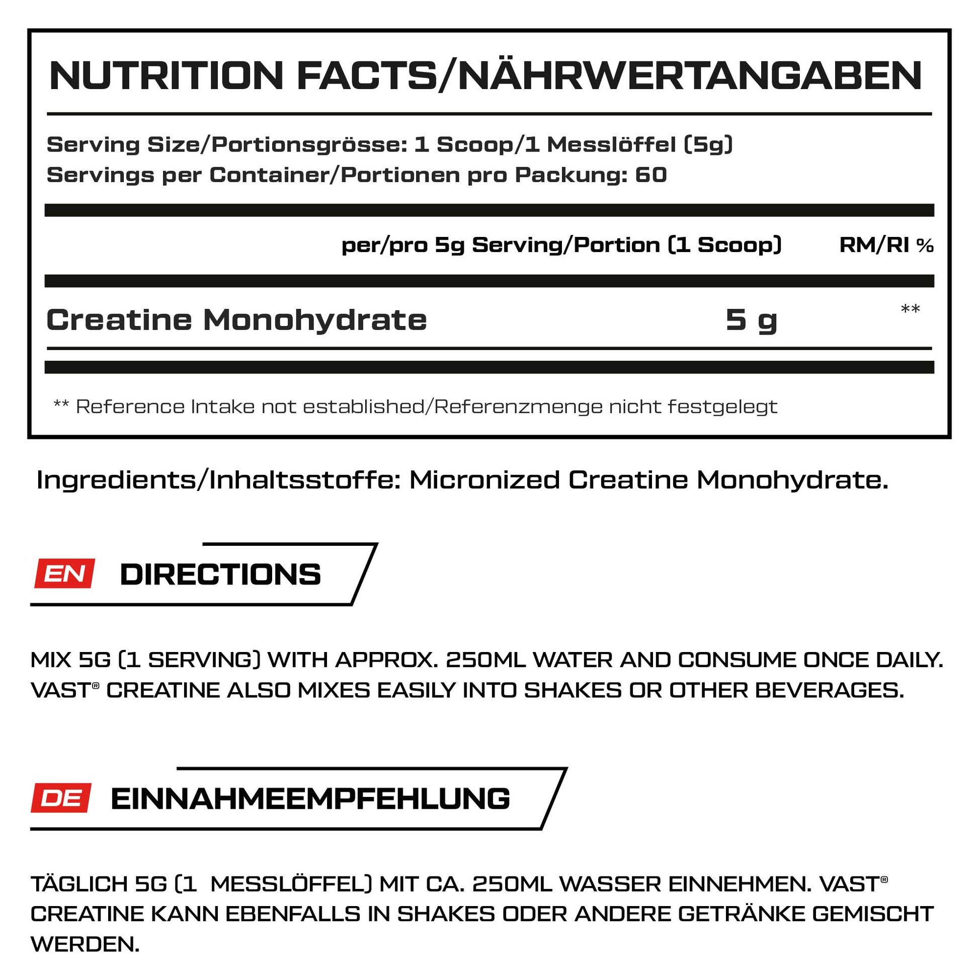 | Creatine Monohydrat | 5 g | - |