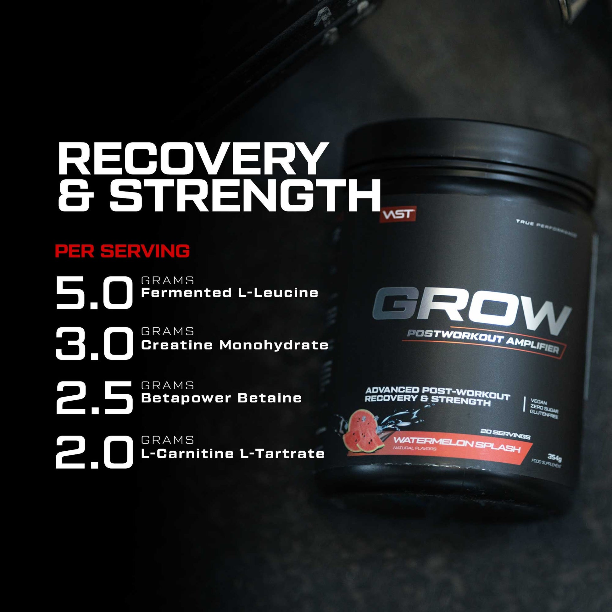 - The PRO's postworkout stack: Powerful postworkout stack consisting of VAST Grow and PRO carbs to improve your muscle recovery and performance.