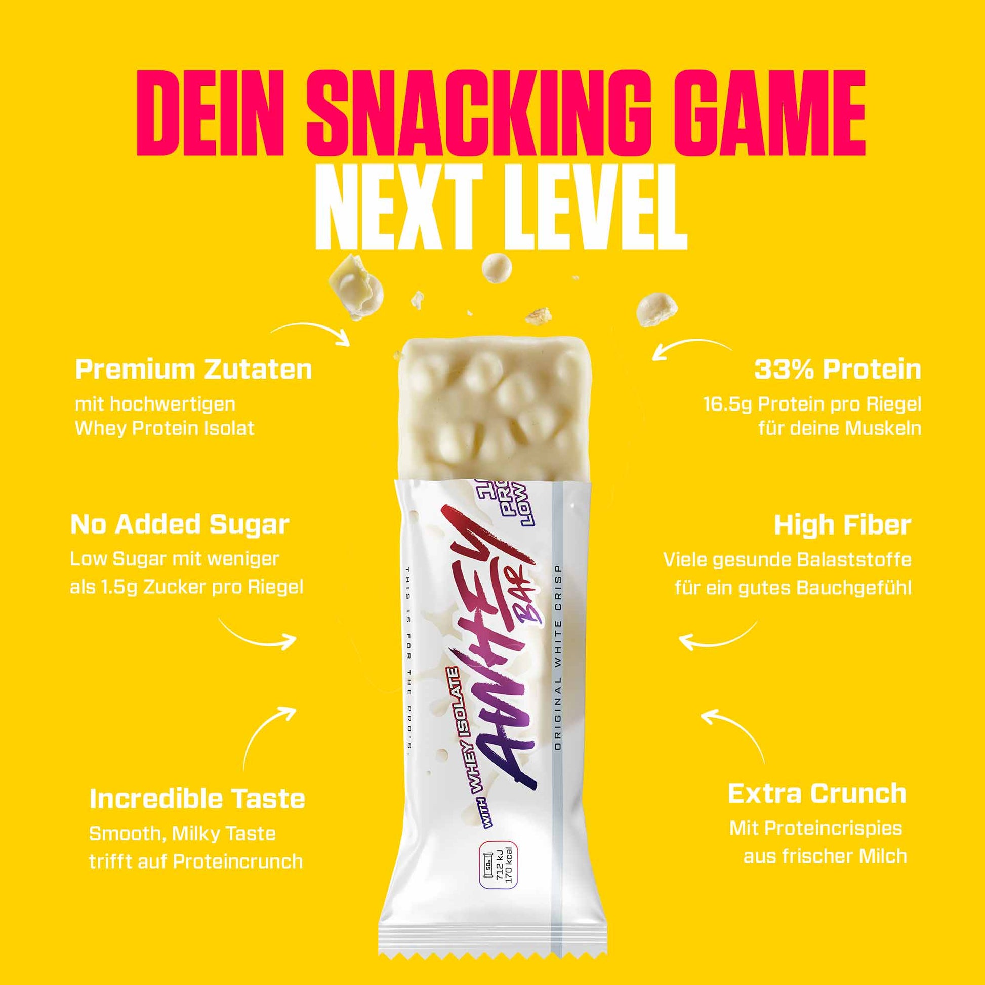 • Der Proteinriegel mit hochwertigem Whey-Isolat & Casein – Die perfekte Kombi aus schnell und langsam verdaulichen Proteinen.