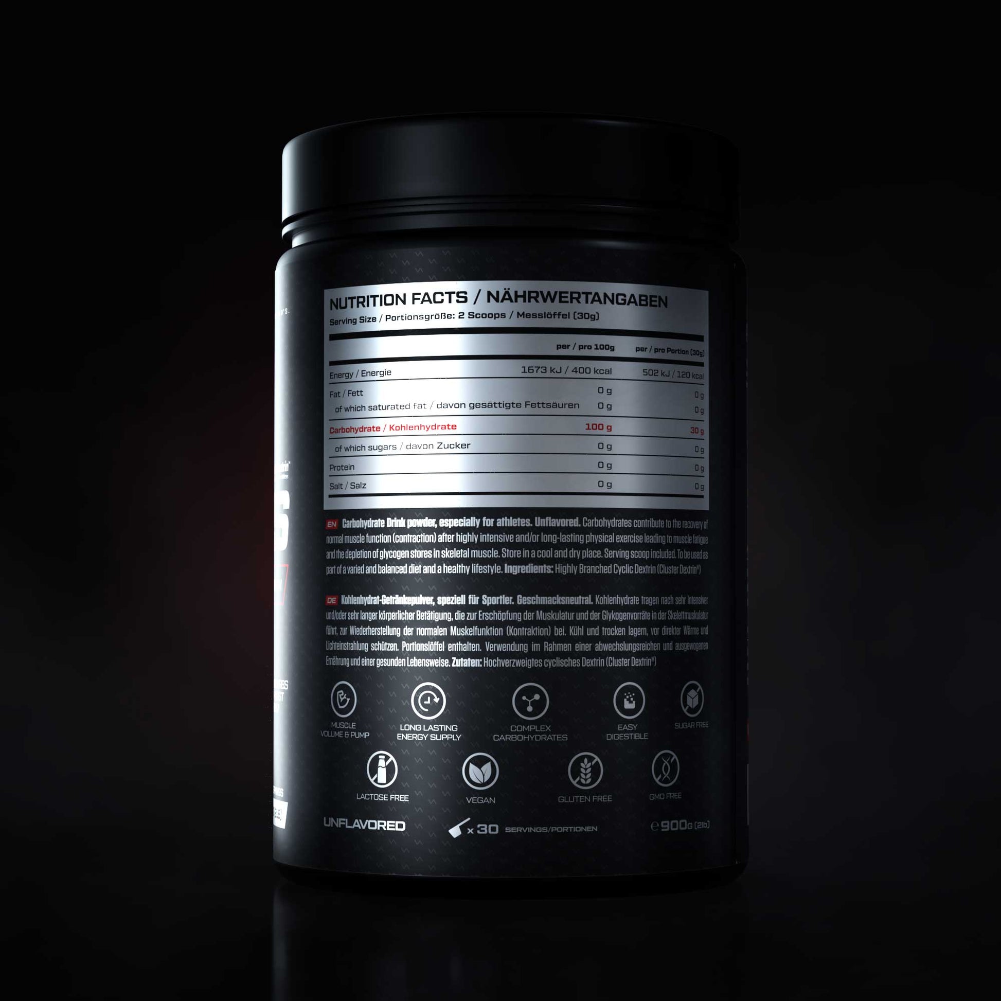 Mit dem patentierten Kohlenhydrat-Cluster Dextrin® liefert PRO Carbs langanhaltende Energie, während deine Muskeln gleichzeitig mit Glykogen aufgefüllt werden, ohne dass es zu unerwünschten Blutzuckerspitzen kommt.